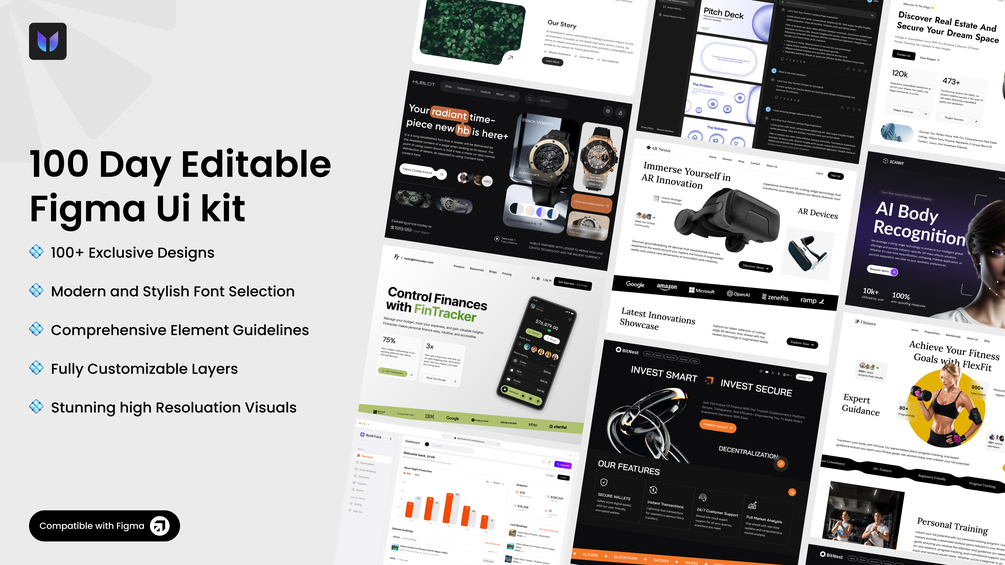 Ready to level up your design game? The 100-Day Editable Figma UI Kit is your ultimate companion for building beautiful, responsive, and modern UI/UX designs.